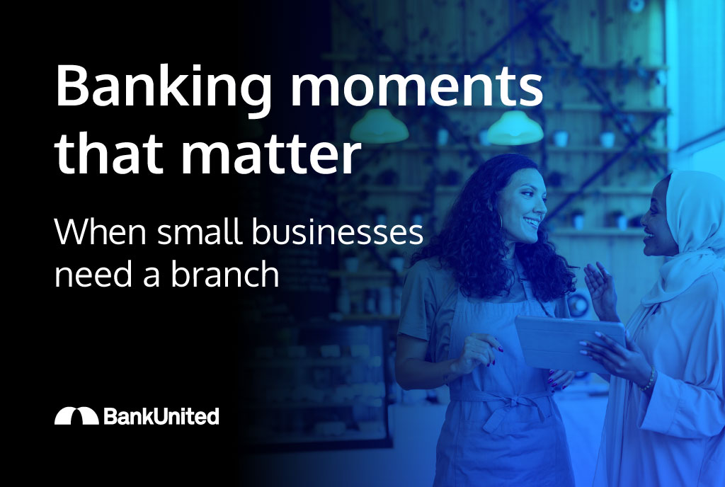 But that doesn’t mean digital banking apps are ideal for everything. “Digital banking excels at delivering convenience and enabling self-service,” says Michael Mitchell, Executive Vice President, Head of Branch Banking for BankUnited. “But if you’re relying solely on online banking or your mobile banking app, you could be missing out on opportunities to enhance your financial management and move your business forward.”